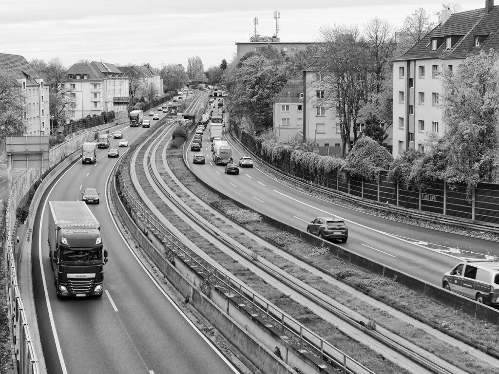 Die Autobahn A 40 ist eine zentrale Verkehrsachse im Ruhrgebiet. Sie verbindet Städte wie Mühlheim, Essen und Bochum. Ich bin die Strecke schon oft gefahren und jedes Mal fiel auf, dass die A 40 die Städte auch zerschneidet. Daraus entstand ein kleines Fotoprojekt, mit dem ich das zeigen möchte. Alle Bilder entstanden auf der A 40 oder maximal 50 m beidseits.