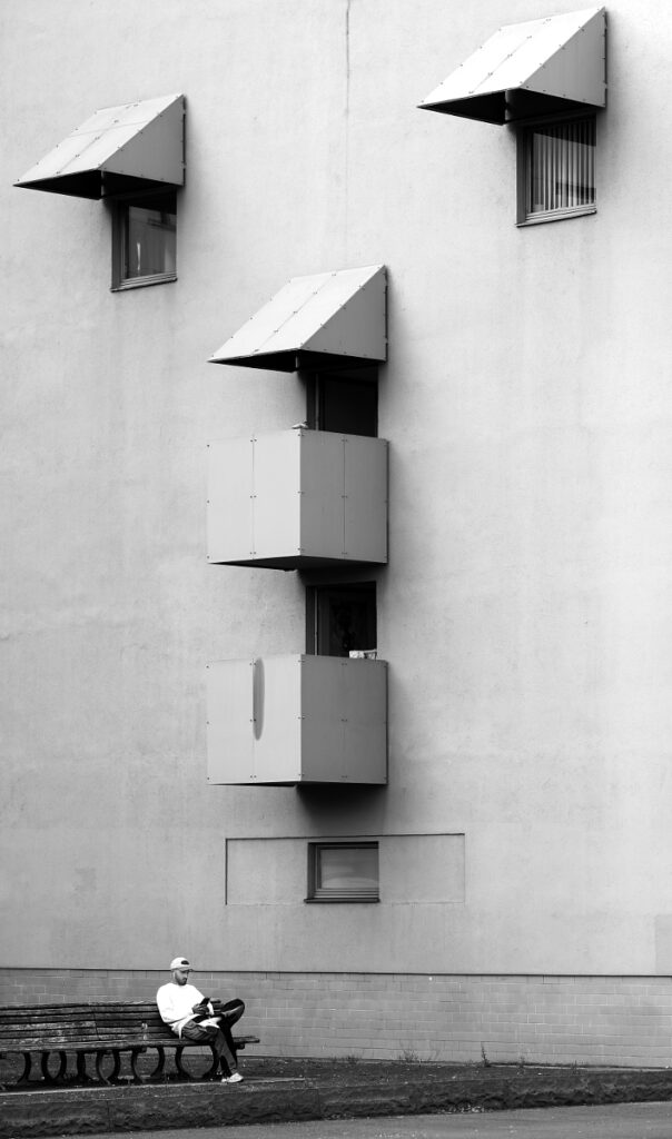 Meine kleine Zusammenstellung von „Bokehgestalten“ zeigt ein interessantes optisches Phänomen. Schattenrissartige Silhouetten von Menschen werden vor hellen Hintergründen stark abstrahiert dargestellt. Um den Effekt zu erreichen, wird eine Normalbrennweite bei offener Blende auf eine kurze Entfernungseinstellung fokussiert. Bei meinen Bildern kam eine Leica Q3 43 bei Blende 2 und einer manuellen Einstelldistanz von 27 cm zum Einsatz. Die abgebildeten Menschen waren ca. 4 Meter entfernt und das helle Display im Hintergrund ca. 6-7 Meter.