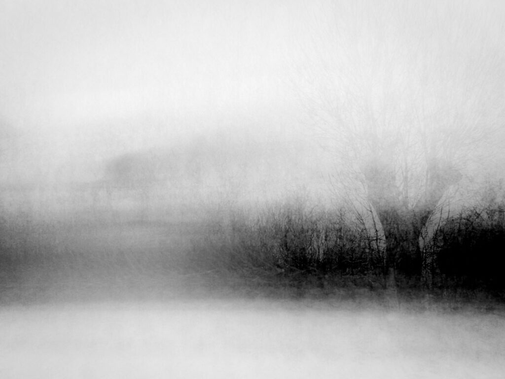 Ein Zug hat mich dann aber doch inspiriert. Auf einer Zugfahrt schaue ich in die verschneite Landschaft. Die schnelle Bahn wirbelt den Schnee auf. Nahe Bäume rauschen vorbei. Entfernte Bäume stehen dagegen fast still am Horizont.