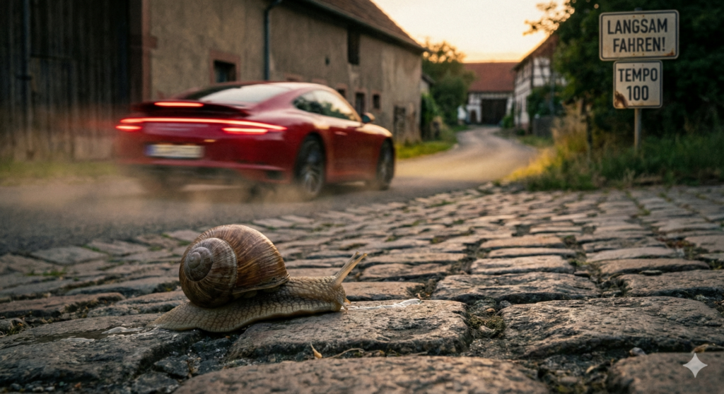 Nicht falsch verstehen – ich finde das künstliche Ergebnis technisch sehr gut. Warum die Schleimspur jetzt aber auch vor der Schnecke ist und warum ich im Januar schon warme und grüne Landschaften sehe? Dies lässt sich mit spezifischeren Angaben bei der Generierung vermeiden oder nachbessern. Es bleibt aber ein künstliches Bild …