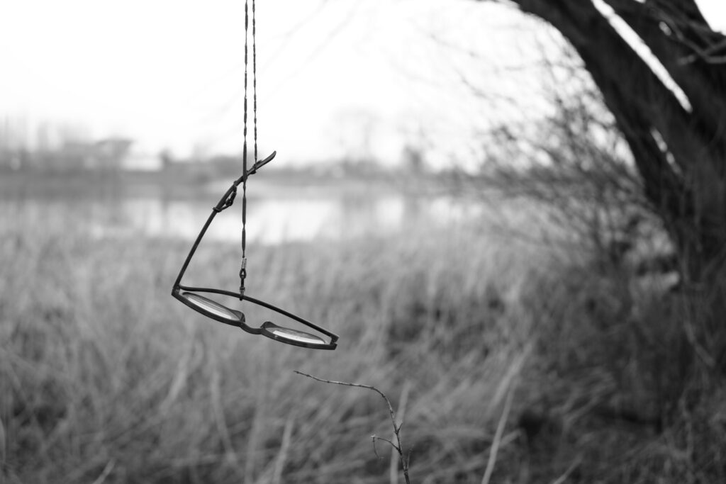 Es spielte (wieder einmal) der Zufall eine Rolle. Beim gestrigen Gang an die Elbe stieß ich fast an eine, in einer Weide aufgehängte, Brille – sicher als Fundstück gedacht. Sie wäre auch noch brauchbar gewesen.